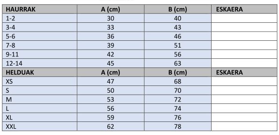 Llega el final del curso y con ello, las excursiones y el Día de la Ikastola. Por esta razón, se hará un nuevo pedido de camisetas de la ikastola, iguales a las que se hicieron hace unos años. Seguidamente tenéis la tabla de medidas para elegir la talla.