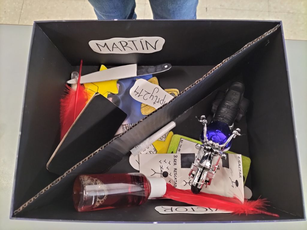 Oroitzapenen kutxa: zer oroitzapen gordeko lituzke kutxa batean zure eleberriko protagonistak? Nobela irakurtzen doazen moduan, garrantzitsuenak iruditzen zaizkien objektuak eta haien iritziz, protagonistak bere oroitzapenen kutxan gordeko lituzkeenak, zerrendatuko dituzte. Istorioa garatzeko funtsezkoak diren egoerak ere jaso ditzakete. 10-12 objektuen zerrenda bildu ondoren, eskuz egin behar dituzte. Aparteko dokumentu batean, gainera, objektu horiek eleberriaren traman duten lotura eta garrantzia xehetasunez idatzi eta zehaztuko dute.