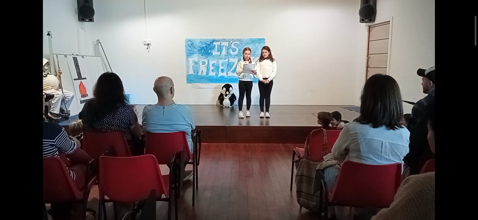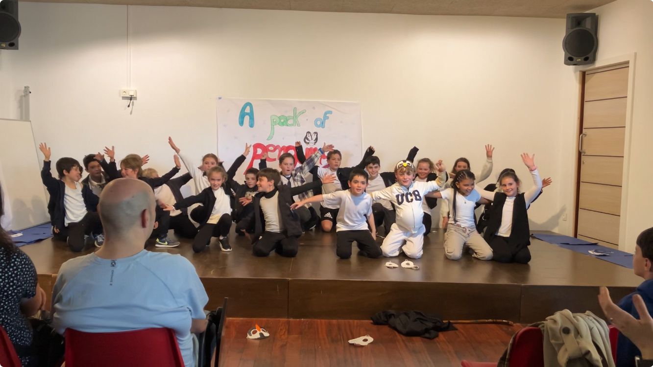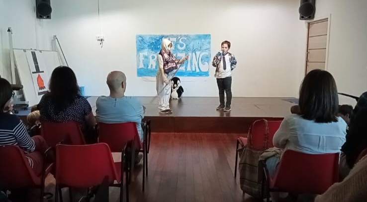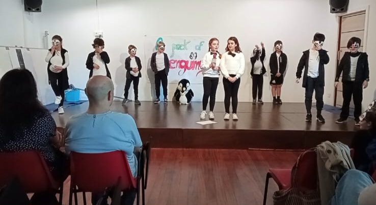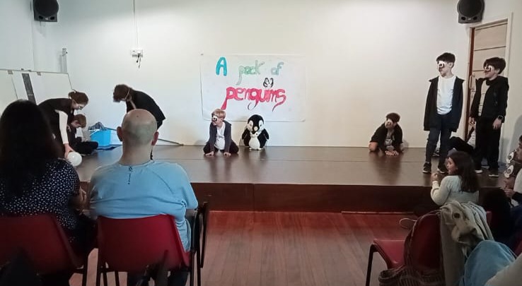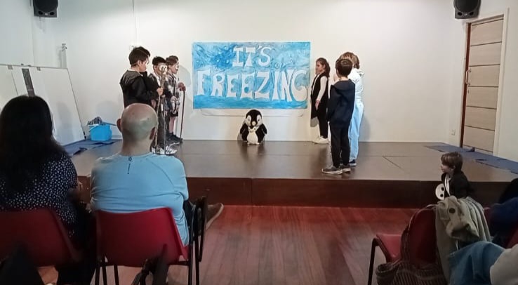 Ayer los alumnos de 3ºro ofrecieros dos teatros a sus familias, !En inglés claro!. Unos interpretaron ” It’s freezing Show y otros “pack of penguins” y después cantaron las canciones y bailaron los bailes de dichas historias.