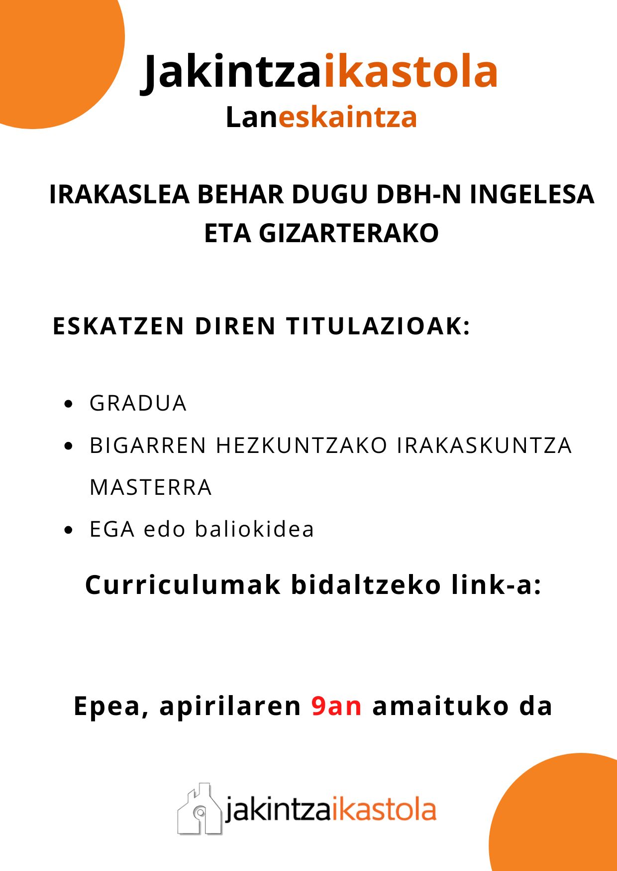 Aste santuko oporrak berehala izango ditugu baino falta diren egun hauetara menua hemen duzue. On egin! Apirileko menua Jangela eta zerbitzu guztien inguruko informazio guztia ikusteko, joan zaitez zerbitzuen inguruan dugun orrira: Zerbitzuak [...]